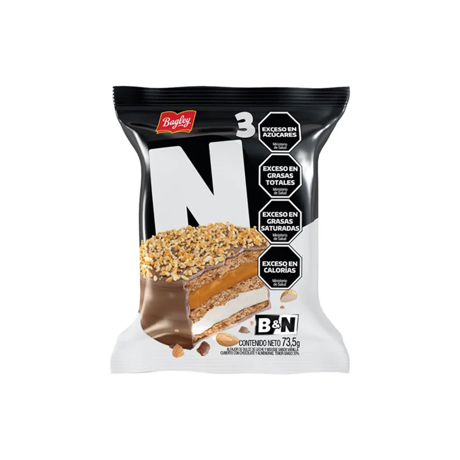 Dos capas de chocolate, una blanca y otra negra, abrazan un relleno de dulce de leche con almendras. Pura tradición en un formato más indulgente.
