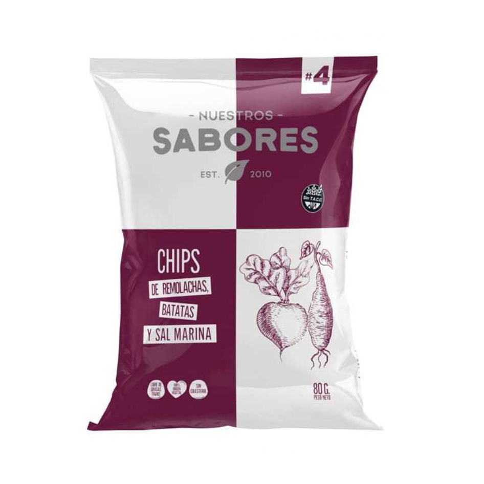 Paquete de chips de remolachas y batata Nuestros sabores 80gr Con Sal marina Sin TAC