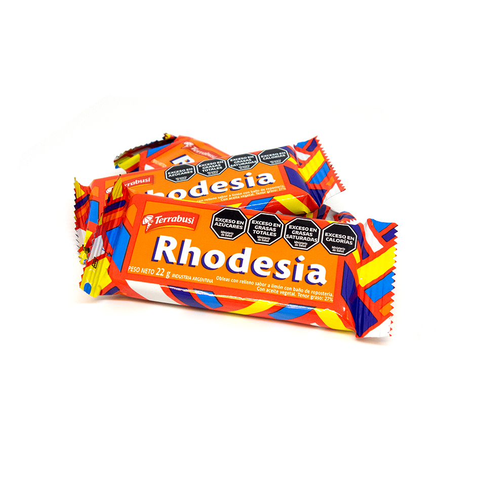 Las obleas Rhodesia constan de dos crujientes tapas, con relleno de limón y el más fino baño de chocolate Terrabusi.