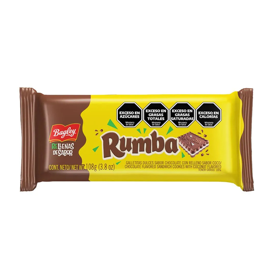 Las Galletitas Rumba de Bagley son crujientes, perfectas para disfrutar con un mate. Las galletas son una sabrosa combinación de masa crujiente y chocolate cremoso.