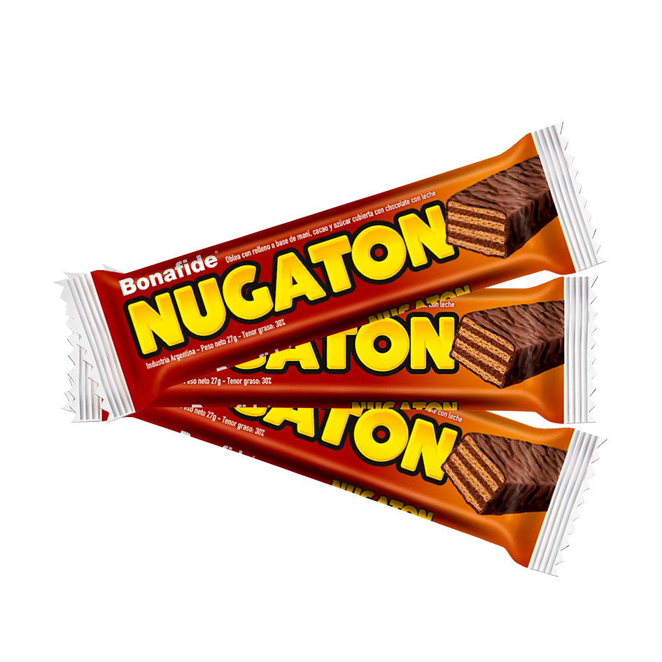 Oblea con relleno a base de maní, cacaco y azúcar, cubierta con chocolate con leche