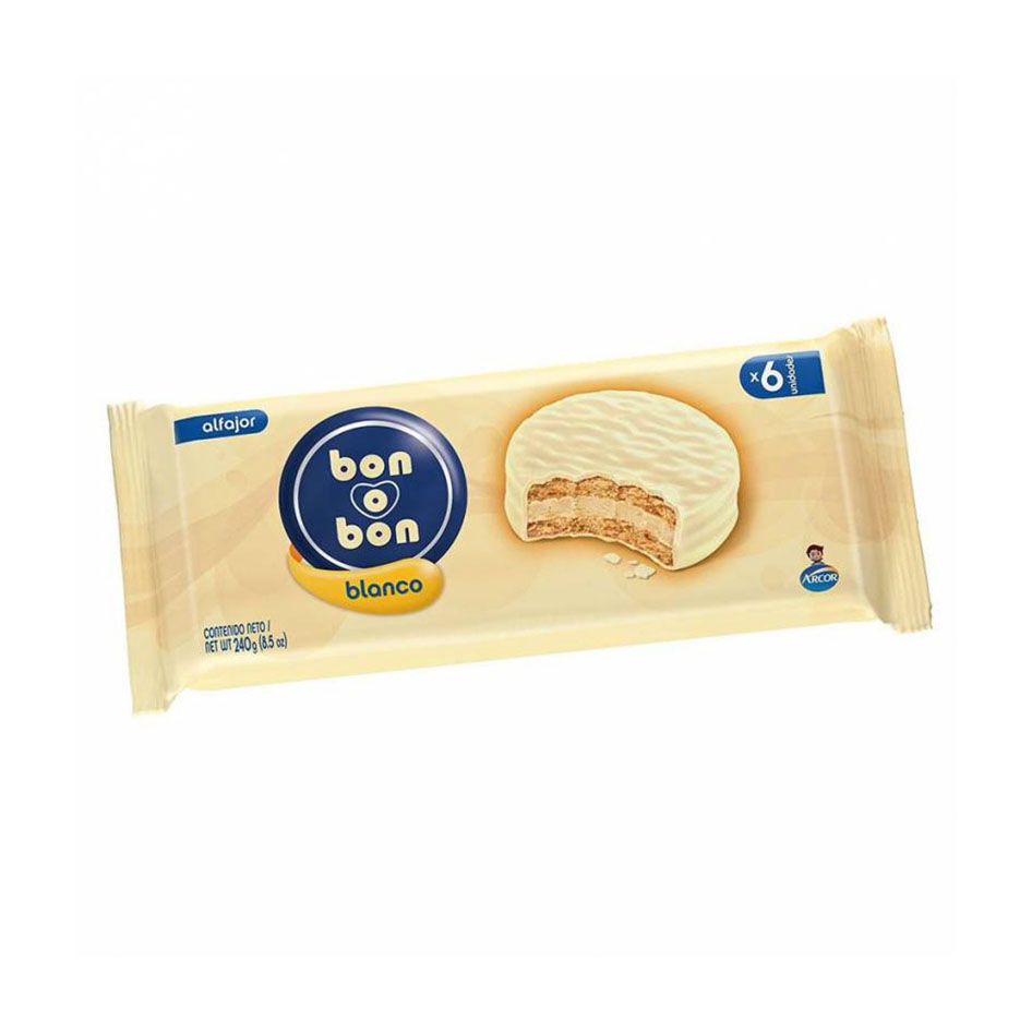 La dulzura del Bon o Bon, ahora recubierta de chocolate blanco. Un bocado suave y cremoso, ideal para esos momentos en que se extraña el sabor a casa. PAQUETE DE 6 UNIDADES